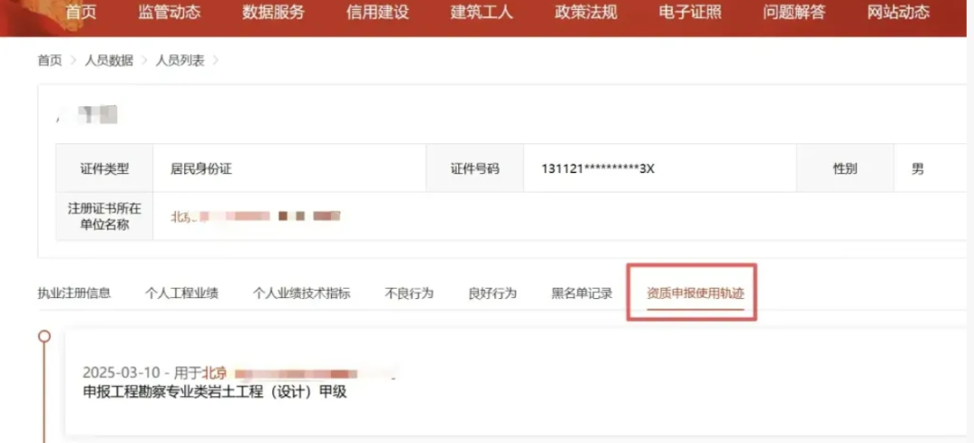 以往,建筑行业证书的使用情况如同蒙着一层神秘面纱。同一本证书在不同时间、不同地区被重复使用的现象时有发生,企业间的信息壁垒造就了证书使用的灰色地带。而今,新功能的上线让每本证书的“职业生涯”都将留下完整轨迹——何时被哪家企业用于申报何种资质,所有信息一目了然。